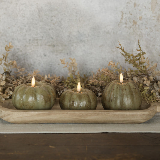 Green 3D Flame Short Pumpkin Candle | 3.5"