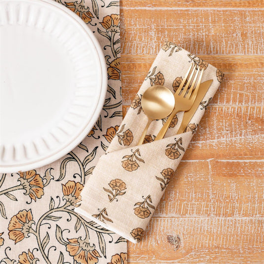 Block Print Napkin | Mustard Floral
