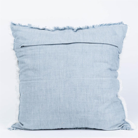 Soft Blue Chambray Fringe Edge Pillow