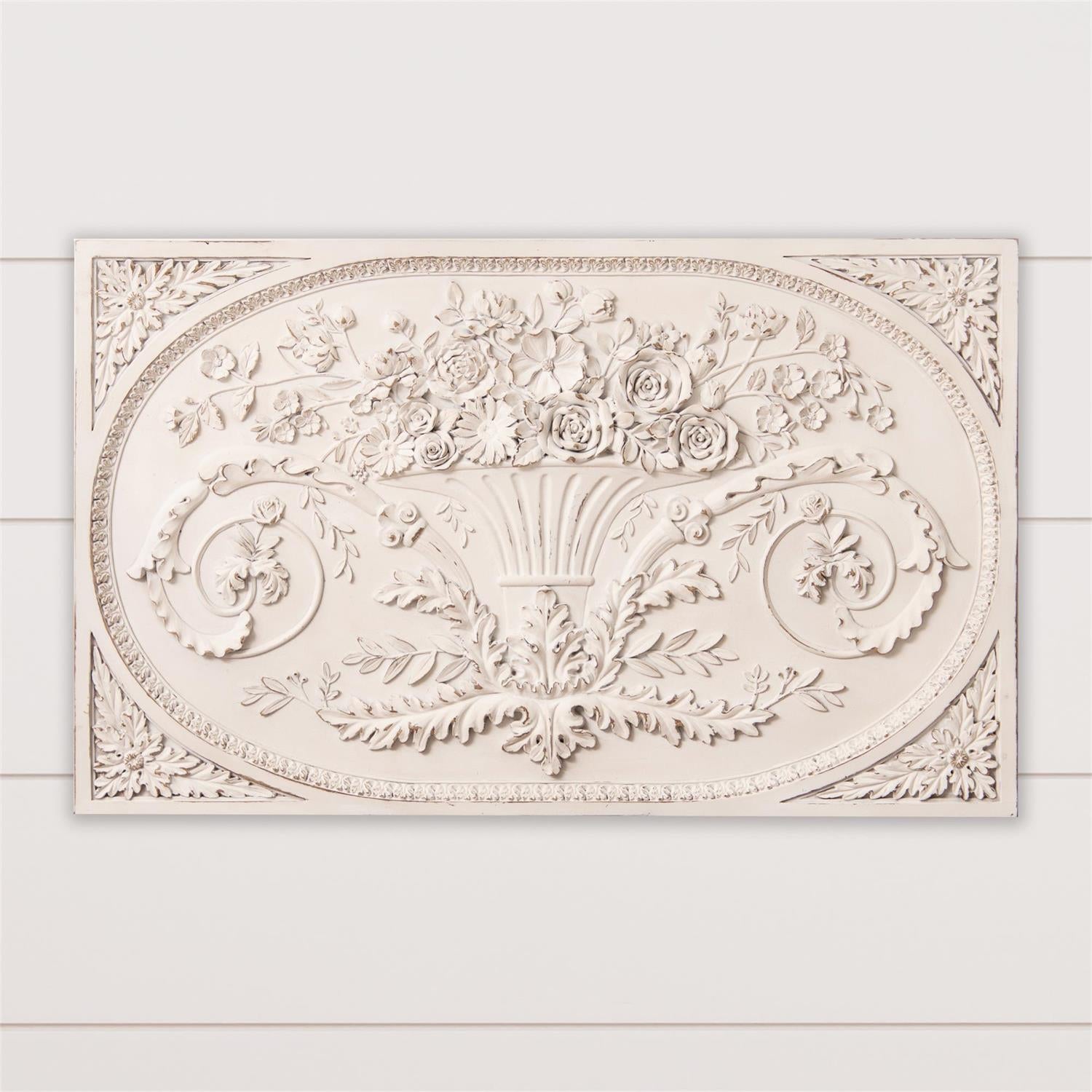 Add a touch of elegance to your home with our Architectural Floral Vase Wall Decor. This regal piece features intricate white floral designs, bringing beauty and charm to any room. Perfect for adding a unique touch to your walls.
