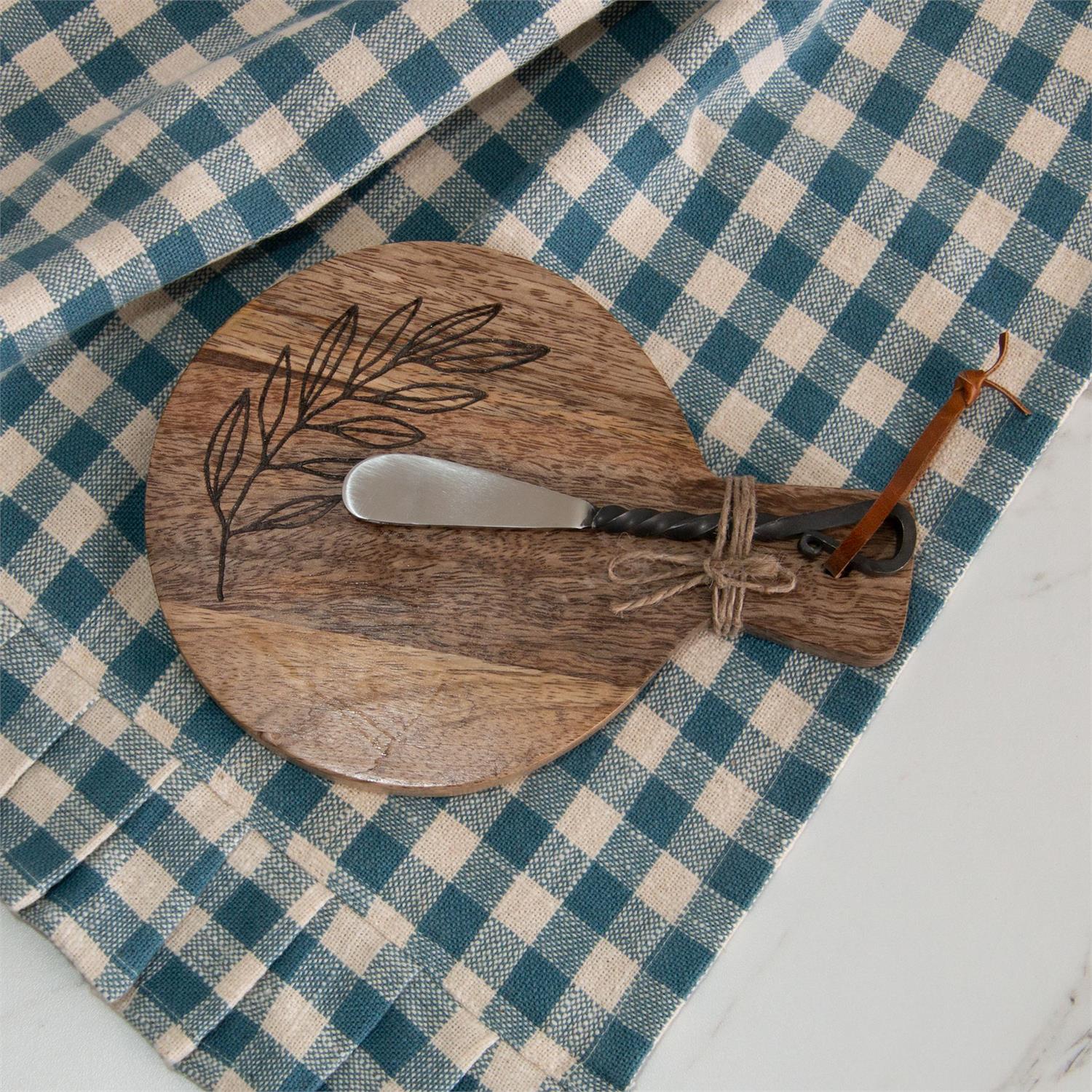 Add a dash of charm to your hosting game with this adorable mango wood cutting board and spreader set. Featuring a sweet etched leaf detail, it’s just the right size for serving cheese, spreads, or snacks. Perfect as a thoughtful little gift or a fun addition to your own kitchen collection.