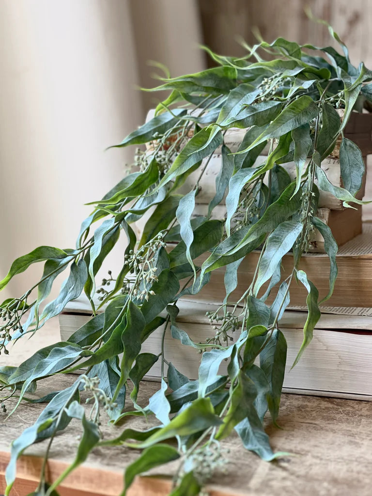 Add a touch of sophistication to your space with our gently arcing stems of long, tapering leaves. Each stem is delicately peppered with small berries, providing a subtle pop of texture and color. Elevate your decor with this premium addition.