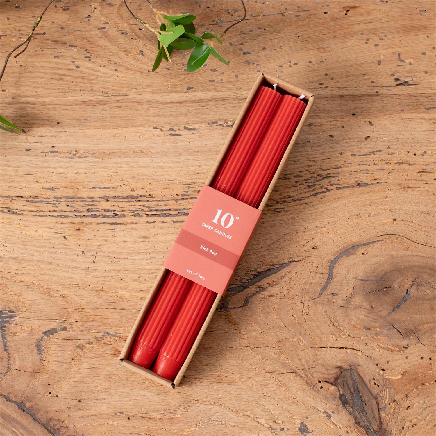 Add a playful touch to your space with the Rich Red Ribbed Taper Candle set. Their charming ribbed texture and rich red color bring fun and warmth, making them the perfect accent to brighten your home or elevate any table setting. These candles effortlessly blend style and cheerfulness for a cozy, inviting atmosphere.