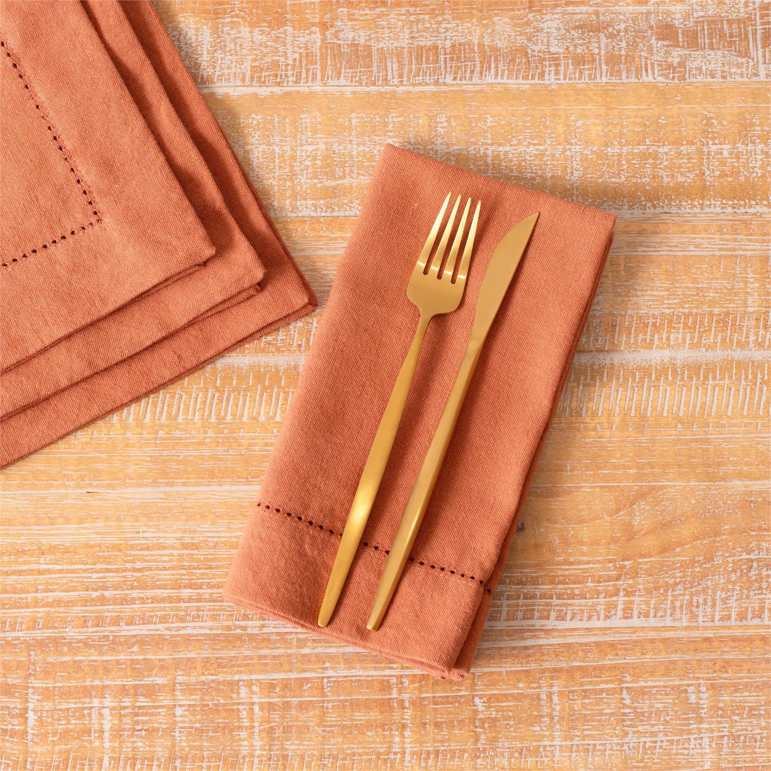 Add a splash of warmth to your table with this beautiful rust-colored linen napkin. Stonewashed for a soft, lived-in feel, it features a delicate detail trim that adds subtle charm to every meal. Perfect for casual dinners or festive gatherings, it brings a playful yet elegant touch to your dining experience.